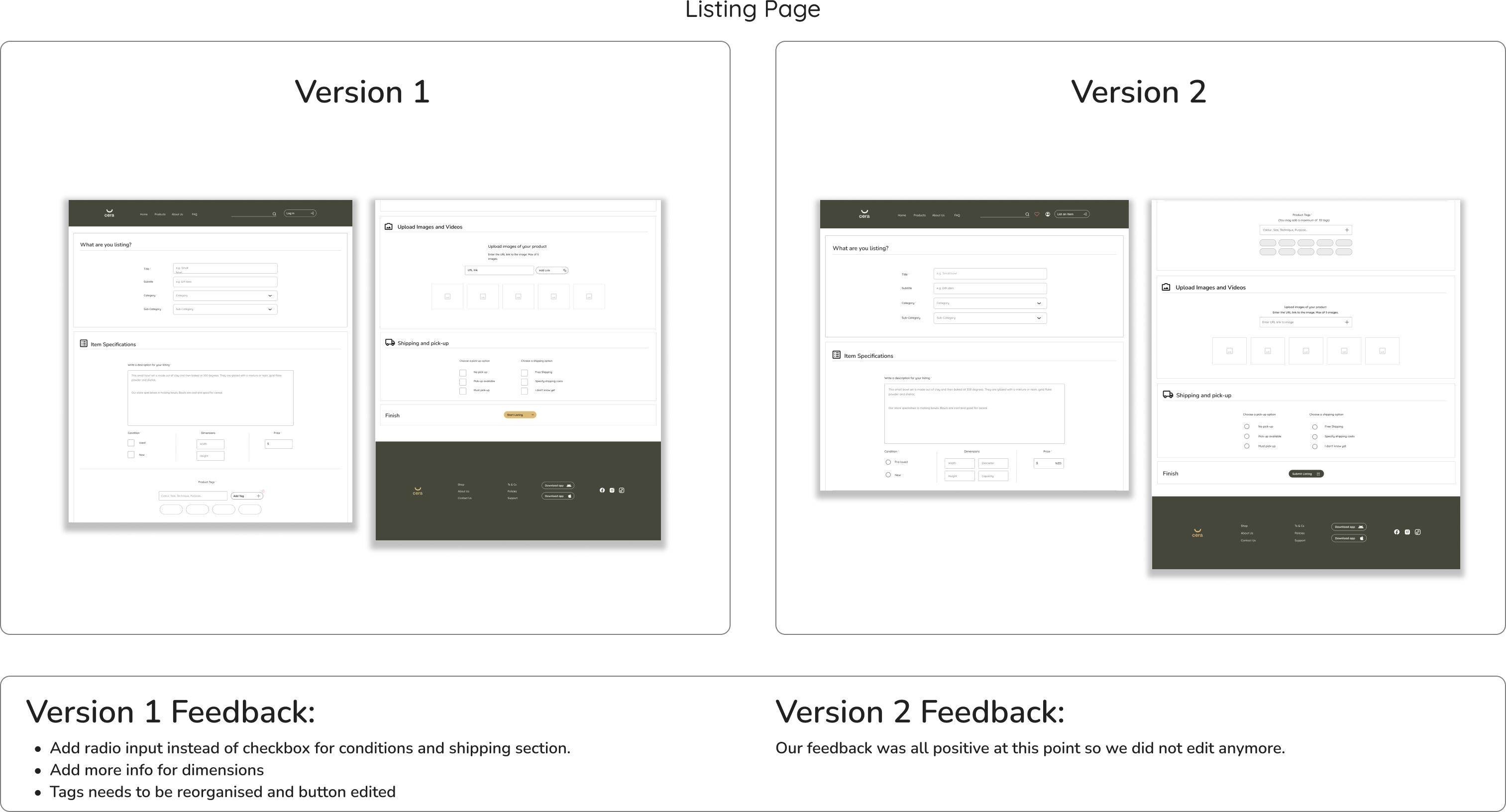 The group has obtained initial information regarding the niche market and its consumers via secondary research. The same research method was also applied to understand the strengths and weaknesses of other competing websites/applications that provide a similar service. Interviews were conducted to obtain primary data on potential users’ pain points and motivation for using the buy and sell app and to validate the initial assumptions made by the team. Furthermore, interviews were used to get feedback on the style tile, low fidelity and high fidelity wireframes of the project. The comments/suggestions given on the testing phase will be used to improve the user experience of the application. All the data gained from this project will serve as guides in developing the full-stack buy and sell application.